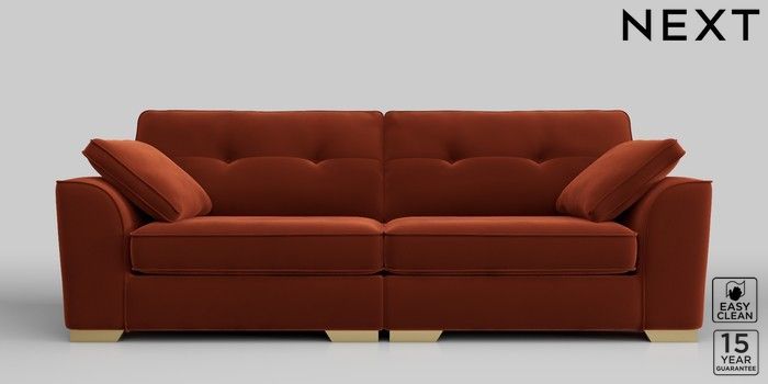 6.11.8 Buy Stamford Buttoned Back 4 Seater Sofa Plush Velvet Easy Clean Ginger Orange Large Square Angle - Brushed Brass from the Next UK online shop Click here to use our accessible website