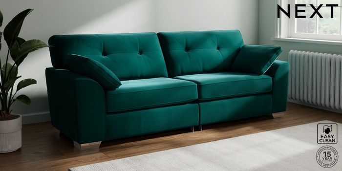 7.3.1 Buy Stamford Buttoned Back 4 Seater Sofa Plush Velvet Easy Clean Juniper Green Large Square Angle - Chrome Metal from the Next UK online shop Click here to use our accessible website