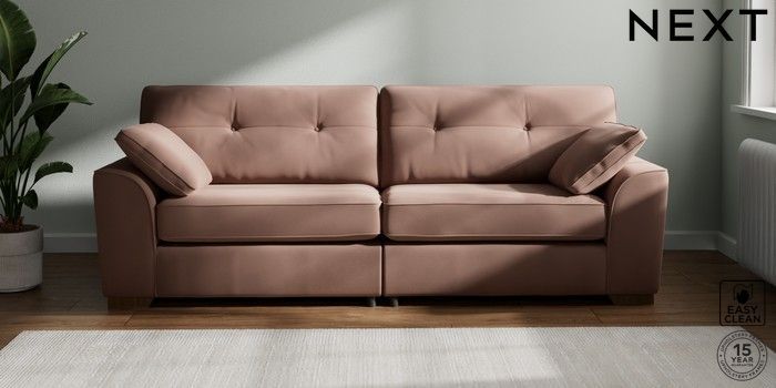 7.2.10 Buy Stamford Buttoned Back 4 Seater Sofa Plush Velvet Easy Clean Mid Natural Large Square Angle - Mid from the Next UK online shop Click here to use our accessible website