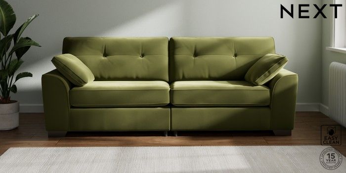7.2.6 Buy Stamford Buttoned Back 4 Seater Sofa Plush Velvet Easy Clean Mid Olive Green Large Square Angle - Gunmetal from the Next UK online shop Click here to use our accessible website