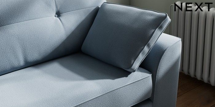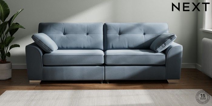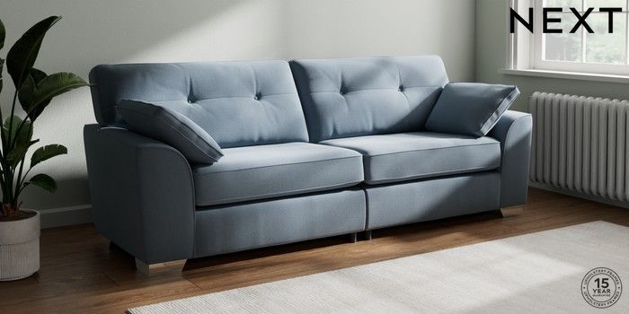 7.2.10 Buy Stamford Buttoned Back 4 Seater Sofa Relaxed Linen Look Mid Blue Large Square Angle - Chrome Metal from the Next UK online shop Click here to use our accessible website