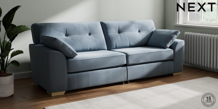 7.2.10 Buy Stamford Buttoned Back 4 Seater Sofa Relaxed Linen Look Mid Blue Large Square Angle - Light from the Next UK online shop Click here to use our accessible website