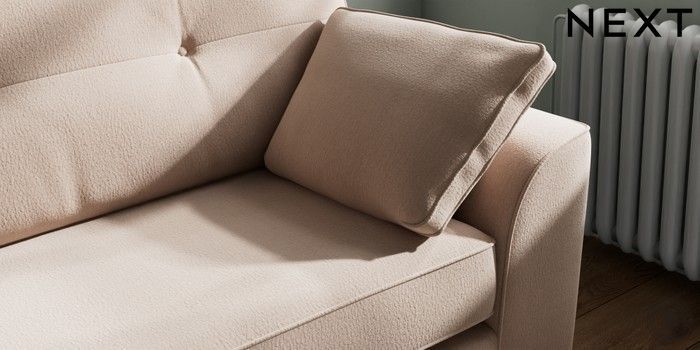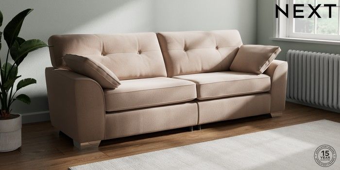 7.2.10 Buy Stamford Buttoned Back 4 Seater Sofa Relaxed Linen Look Mid Natural Large Square Angle - Chrome Metal from the Next UK online shop Click here to use our accessible website