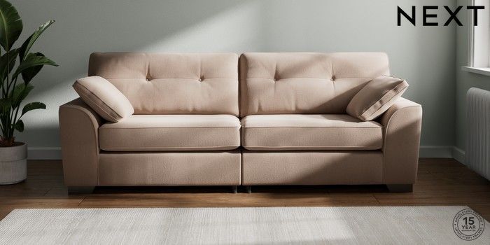 7.3.1 Buy Stamford Buttoned Back 4 Seater Sofa Relaxed Linen Look Mid Natural Large Square Angle - Gunmetal from the Next UK online shop Click here to use our accessible website