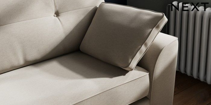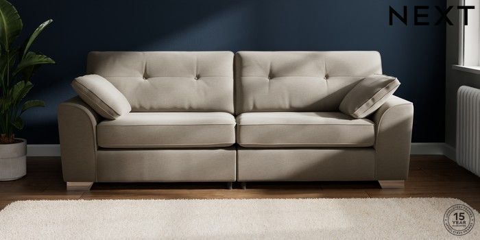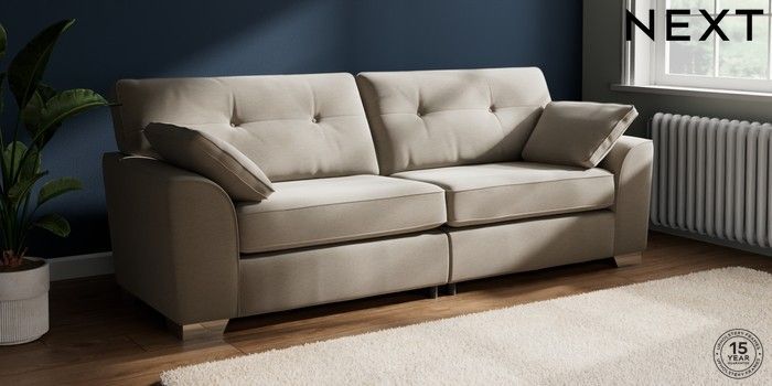 7.2.10 Buy Stamford Buttoned Back 4 Seater Sofa Ripple Chenille Light Natural Large Square Angle - Chrome Metal from the Next UK online shop Click here to use our accessible website