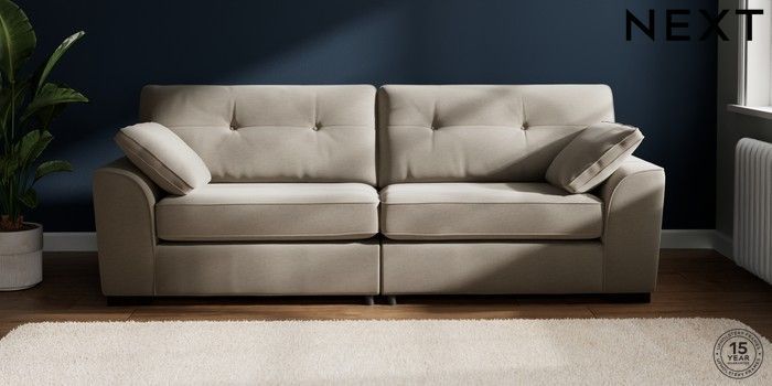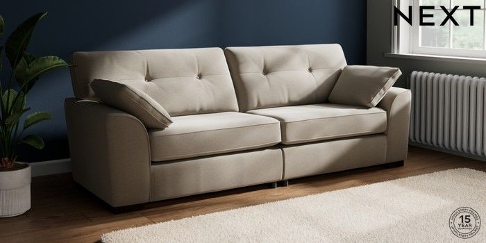 7.2.10 Buy Stamford Buttoned Back 4 Seater Sofa Ripple Chenille Light Natural Large Square Angle - Dark from the Next UK online shop Click here to use our accessible website