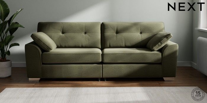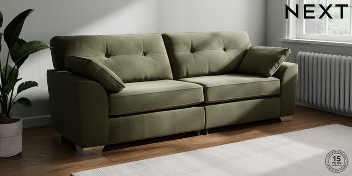7.2.10 Buy Stamford Buttoned Back 4 Seater Sofa Ripple Chenille Mid Moss Green Large Square Angle - Chrome Metal from the Next UK online shop Click here to use our accessible website