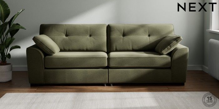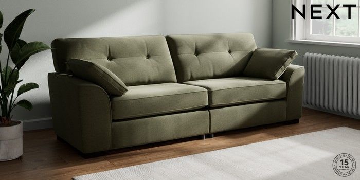 7.2.10 Buy Stamford Buttoned Back 4 Seater Sofa Ripple Chenille Mid Moss Green Large Square Angle - Dark from the Next UK online shop Click here to use our accessible website