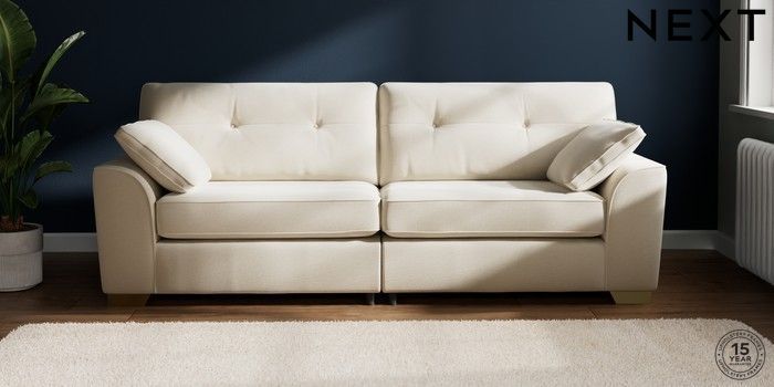 7.2.10 Buy Stamford Buttoned Back 4 Seater Sofa Ripple Chenille Oyster Large Square Angle - Brushed Brass from the Next UK online shop Click here to use our accessible website
