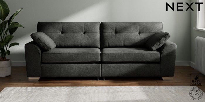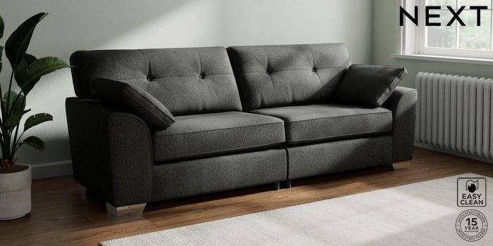 7.2.10 Buy Stamford Buttoned Back 4 Seater Sofa Tweedy Blend Easy Clean Charcoal Grey Large Square Angle - Chrome Metal from the Next UK online shop Click here to use our accessible website