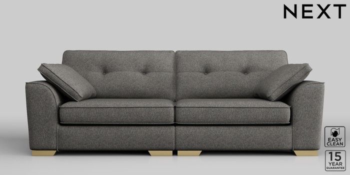 6.11.4 Buy Stamford Buttoned Back 4 Seater Sofa Tweedy Blend Easy Clean Dark Grey Large Square Angle - Brushed Brass from the Next UK online shop Click here to use our accessible website