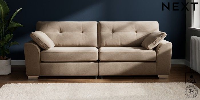 7.3.1 Buy Stamford Buttoned Back 4 Seater Sofa Tweedy Blend Easy Clean Light Dove Natural Large Square Angle - Chrome Metal from the Next UK online shop Click here to use our accessible website