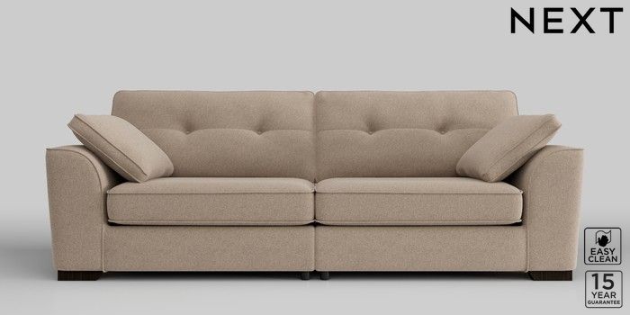 6.11.4 Buy Stamford Buttoned Back 4 Seater Sofa Tweedy Blend Easy Clean Light Dove Natural Large Square Angle - Dark from the Next UK online shop Click here to use our accessible website