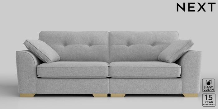 6.11.8 Buy Stamford Buttoned Back 4 Seater Sofa Tweedy Blend Easy Clean Light Silver Grey Large Square Angle - Brushed Brass from the Next UK online shop Click here to use our accessible website