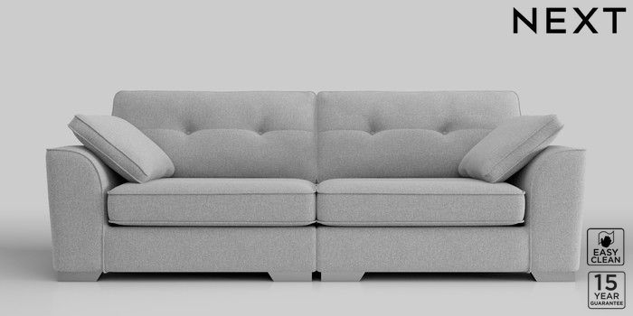 6.11.4 Buy Stamford Buttoned Back 4 Seater Sofa Tweedy Blend Easy Clean Light Silver Grey Large Square Angle - Chrome Metal from the Next UK online shop Click here to use our accessible website
