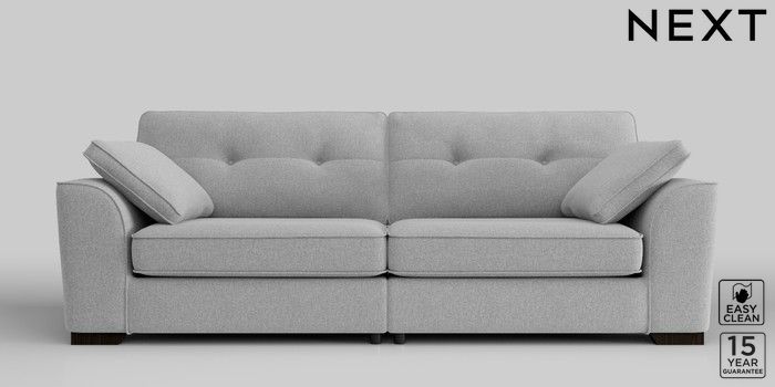6.11.4 Buy Stamford Buttoned Back 4 Seater Sofa Tweedy Blend Easy Clean Light Silver Grey Large Square Angle - Dark from the Next UK online shop Click here to use our accessible website