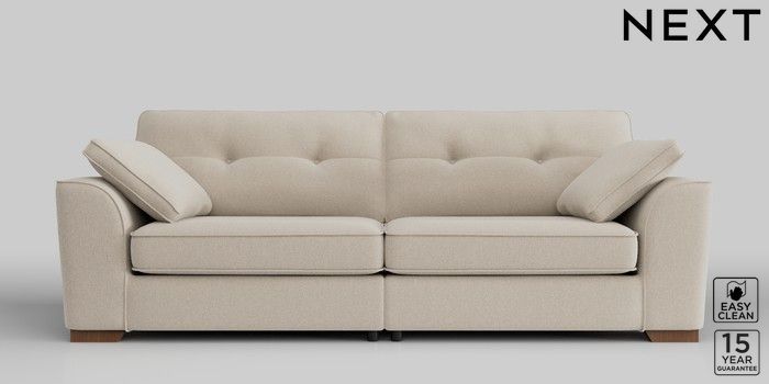 6.10.9 Buy Stamford Buttoned Back 4 Seater Sofa Tweedy Blend Easy Clean Oyster Large Square Angle - Mid from the Next UK online shop Click here to use our accessible website