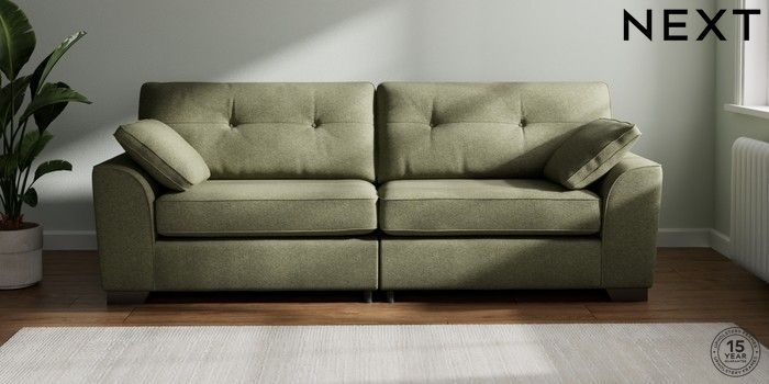 6.12.1 Buy Stamford Buttoned Back 4 Seater Sofa Tweedy Chenille Mid Moss Green Large Square Angle - Gunmetal from the Next UK online shop Click here to use our accessible website