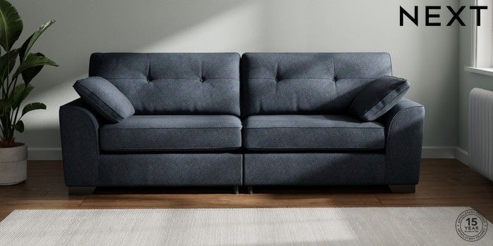 7.2.6 Buy Stamford Buttoned Back 4 Seater Sofa Tweedy Chenille Navy Blue Large Square Angle - Gunmetal from the Next UK online shop Click here to use our accessible website