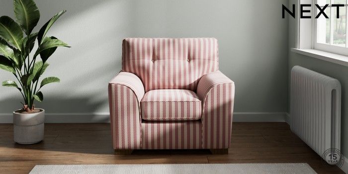 7.3.1 Buy Stamford Buttoned Back Armchair Bold Chenille Stripe Dark Pink Square Angle - Mid from the Next UK online shop Click here to use our accessible website