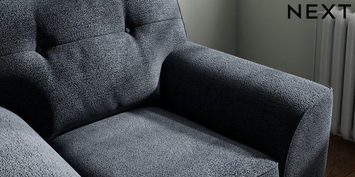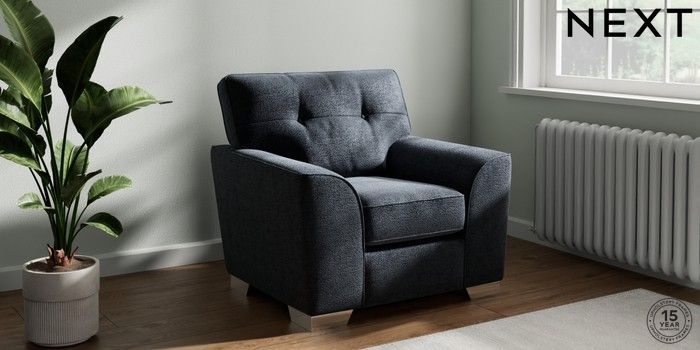 7.2.10 Buy Stamford Buttoned Back Armchair Boucle Chenille Dark Slate Blue Square Angle - Chrome Metal from the Next UK online shop Click here to use our accessible website