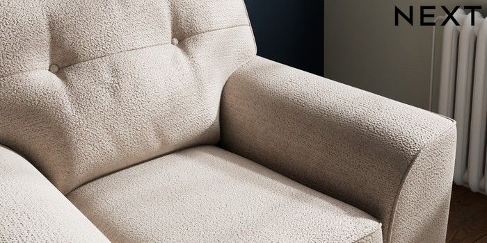 7.2.10 Buy Stamford Buttoned Back Armchair Boucle Chenille Light Natural Square Angle - Gunmetal from the Next UK online shop Click here to use our accessible website