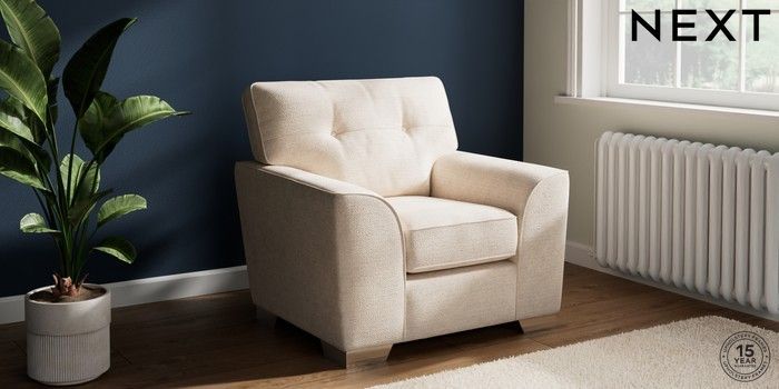 7.2.10 Buy Stamford Buttoned Back Armchair Boucle Chenille Oyster Square Angle - Chrome Metal from the Next UK online shop Click here to use our accessible website