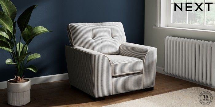 7.3.1 Buy Stamford Buttoned Back Armchair Chenille Stripe Slate Blue Square Angle - Dark from the Next UK online shop Click here to use our accessible website