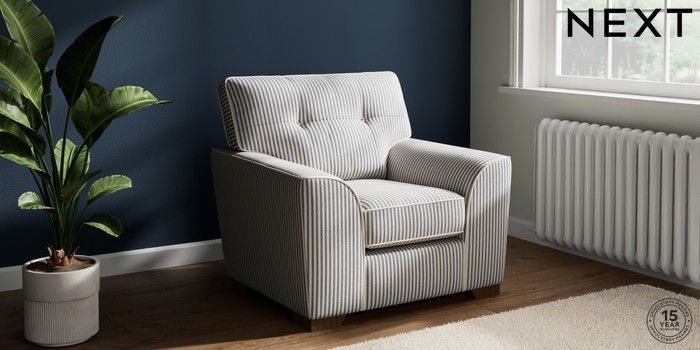 7.3.1 Buy Stamford Buttoned Back Armchair Chenille Stripe Slate Blue Square Angle - Mid from the Next UK online shop Click here to use our accessible website