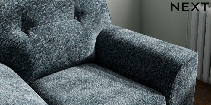 7.2.10 Buy Stamford Buttoned Back Armchair Chunky Chenille Dark Navy Blue Square Angle - Brushed Brass from the Next UK online shop Click here to use our accessible website