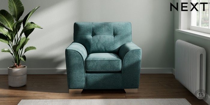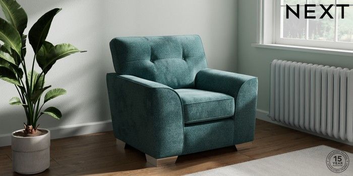 7.2.10 Buy Stamford Buttoned Back Armchair Chunky Chenille Mid Teal Green Square Angle - Chrome Metal from the Next UK online shop Click here to use our accessible website