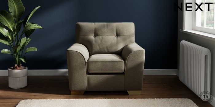 7.2.10 Buy Stamford Buttoned Back Armchair Chunky Marl Light Olive Green Square Angle - Brushed Brass from the Next UK online shop Click here to use our accessible website