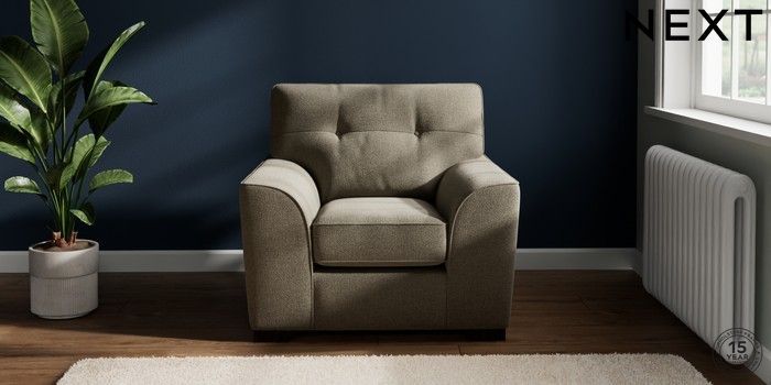 7.2.10 Buy Stamford Buttoned Back Armchair Chunky Marl Light Olive Green Square Angle - Dark from the Next UK online shop Click here to use our accessible website