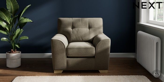 7.2.10 Buy Stamford Buttoned Back Armchair Chunky Marl Light Olive Green Square Angle - Light from the Next UK online shop Click here to use our accessible website