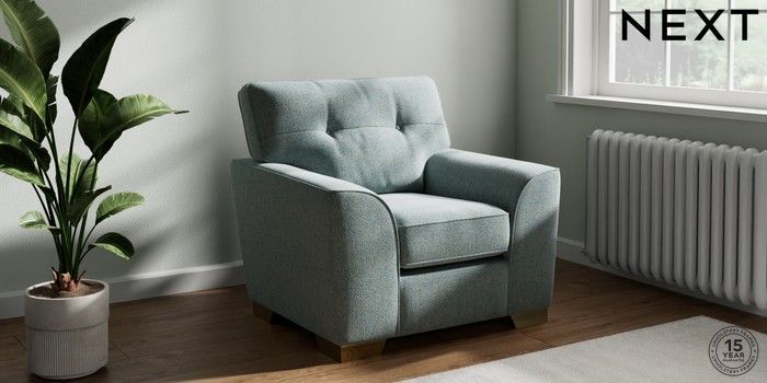 7.2.10 Buy Stamford Buttoned Back Armchair Chunky Marl Mid Blue Square Angle - Brushed Brass from the Next UK online shop Click here to use our accessible website