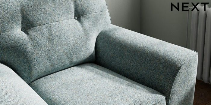 7.2.10 Buy Stamford Buttoned Back Armchair Chunky Marl Mid Blue Square Angle - Chrome Metal from the Next UK online shop Click here to use our accessible website