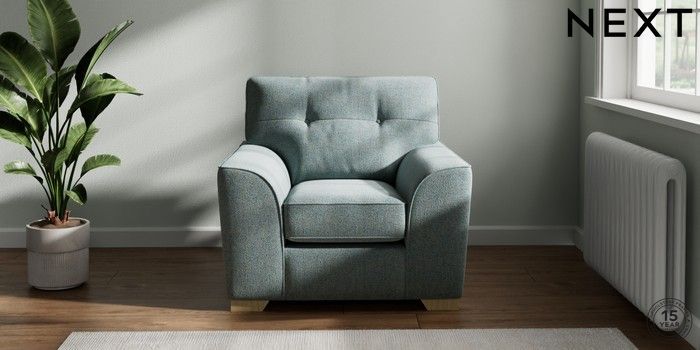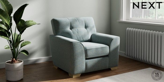 7.2.10 Buy Stamford Buttoned Back Armchair Chunky Marl Mid Blue Square Angle - Light from the Next UK online shop Click here to use our accessible website