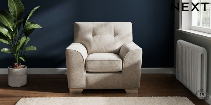 7.2.6 Buy Stamford Buttoned Back Armchair Chunky Marl Oyster Square Angle - Chrome Metal from the Next UK online shop Click here to use our accessible website