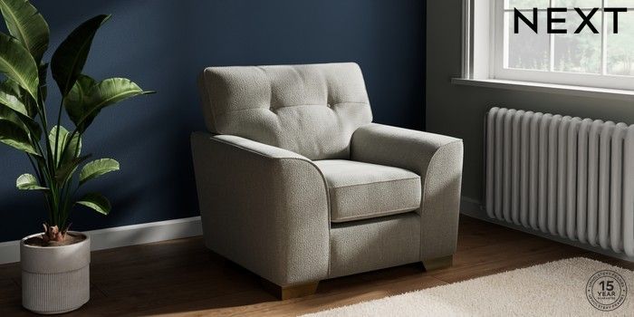 7.2.10 Buy Stamford Buttoned Back Armchair Chunky Texture Dove Square Angle - Brushed Brass from the Next UK online shop Click here to use our accessible website