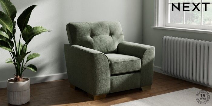 7.2.10 Buy Stamford Buttoned Back Armchair Chunky Texture Mid Forest Green Square Angle - Brushed Brass from the Next UK online shop Click here to use our accessible website