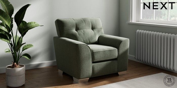 7.2.10 Buy Stamford Buttoned Back Armchair Chunky Texture Mid Forest Green Square Angle - Chrome Metal from the Next UK online shop Click here to use our accessible website