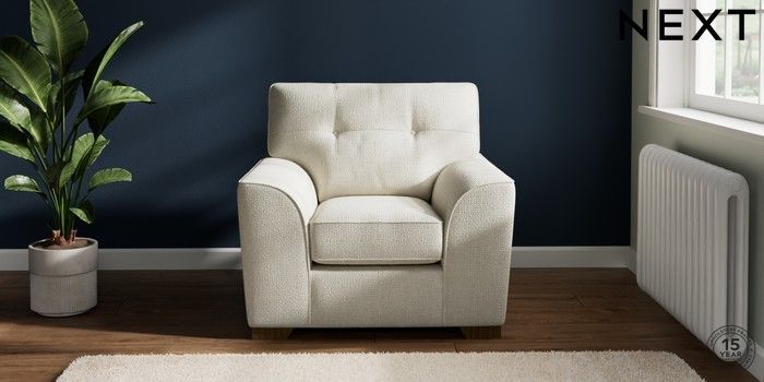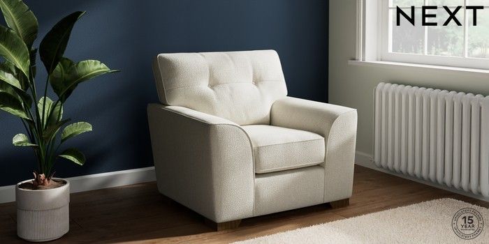 7.2.10 Buy Stamford Buttoned Back Armchair Chunky Texture Oyster Square Angle - Mid from the Next UK online shop Click here to use our accessible website