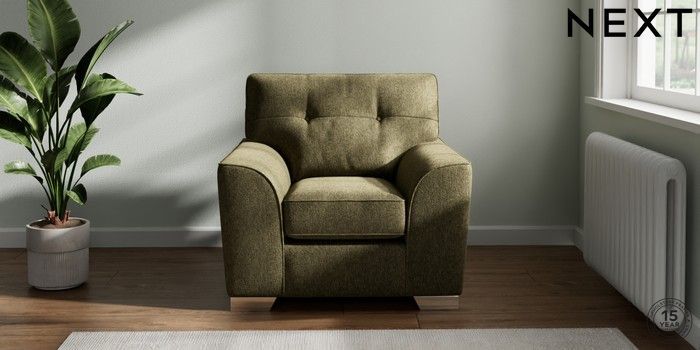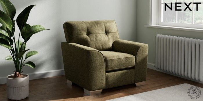 7.2.10 Buy Stamford Buttoned Back Armchair Cotswold Chenille Dark Green Square Angle - Chrome Metal from the Next UK online shop Click here to use our accessible website