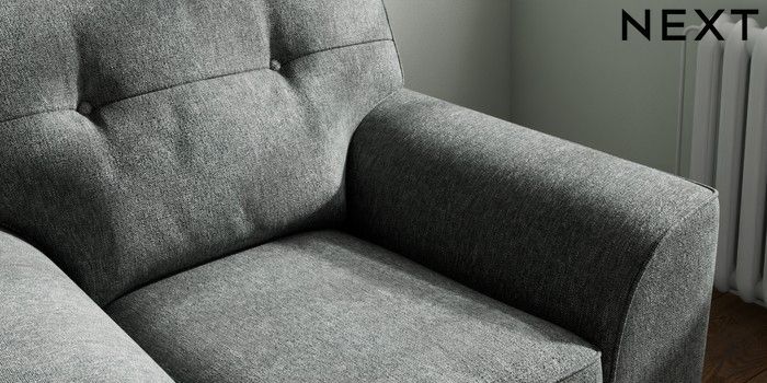 7.2.10 Buy Stamford Buttoned Back Armchair Cotswold Chenille Dark Grey Square Angle - Chrome Metal from the Next UK online shop Click here to use our accessible website