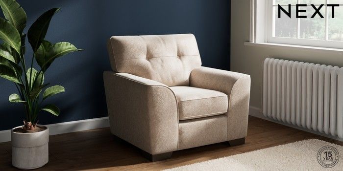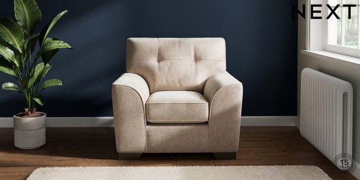 7.2.10 Buy Stamford Buttoned Back Armchair Cotswold Chenille Light Natural Square Angle - Gunmetal from the Next UK online shop Click here to use our accessible website