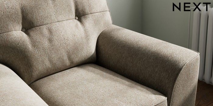 7.2.6 Buy Stamford Buttoned Back Armchair Cotswold Chenille Mid Mink Brown Square Angle - Chrome Metal from the Next UK online shop Click here to use our accessible website