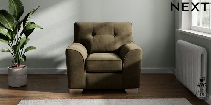 7.2.6 Buy Stamford Buttoned Back Armchair Fine Chenille Easy Clean Dark Moss Green Square Angle - Chrome Metal from the Next UK online shop Click here to use our accessible website