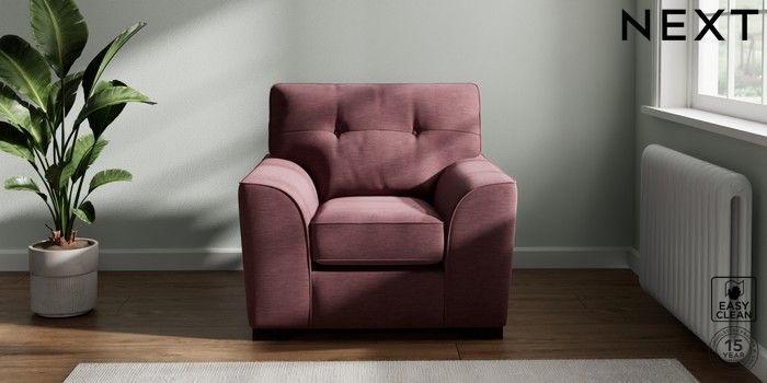 7.2.10 Buy Stamford Buttoned Back Armchair Fine Chenille Easy Clean Mid Mulberry Purple Square Angle - Dark from the Next UK online shop Click here to use our accessible website