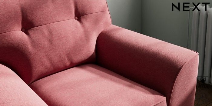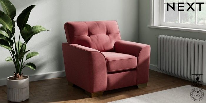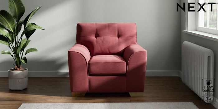 7.2.10 Buy Stamford Buttoned Back Armchair Fine Chenille Easy Clean Mid Pink Square Angle - Brushed Brass from the Next UK online shop Click here to use our accessible website