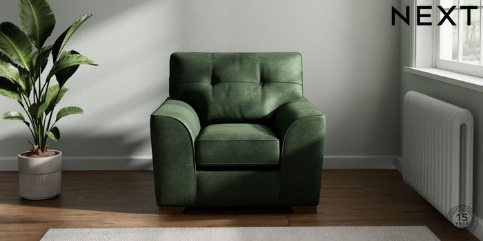 7.2.6 Buy Stamford Buttoned Back Armchair Luxe Chenille Dark Green Square Angle - Mid from the Next UK online shop Click here to use our accessible website